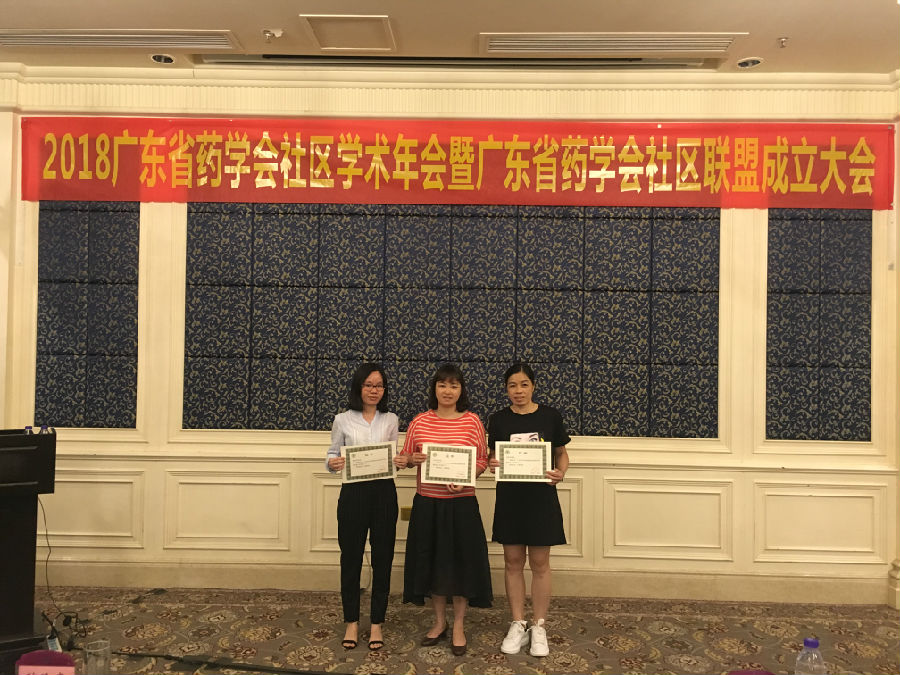 三、 表彰大会。表彰大会由广东省药学会第一届社区联盟天河区联盟秘书长、天河区林和街社区卫生服务中心主任张晓明主持。经研究,对2017-2018年度在“广东省药学会社区用药信息网”工作中表现突出的单位和个人进行表彰。受表彰的先进单位: