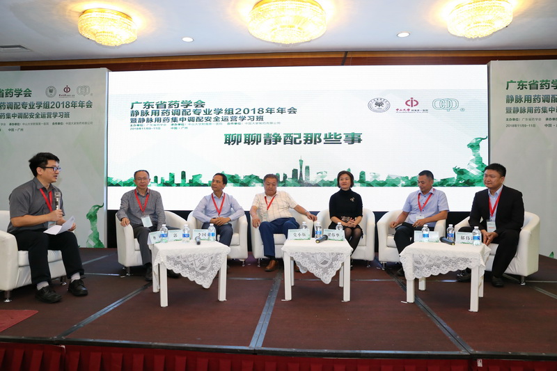 本次年会特别设置了“嘉宾访谈”环节,特邀广州市番禺中心医院梁伟华副院长、河源市人民医院党小伍副院长、广州市第一人民医院药剂科李国豪主任、茂名市人民医院药剂科陈建华主任、南方医科大学南方医院药学部郭丹副主任以及中国大冢制药有限公司郁伟海工程师,围绕PIVAS的建设与发展进行交流探讨,激情碰撞、精彩纷呈。