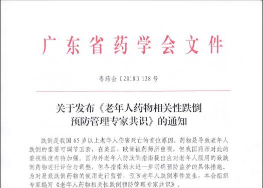 关于发布《老年人药物相关性跌倒预防管理专家共识》的通知