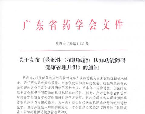 关于发布《药源性(抗胆碱能)认知功能障碍健康管理共识》的通知